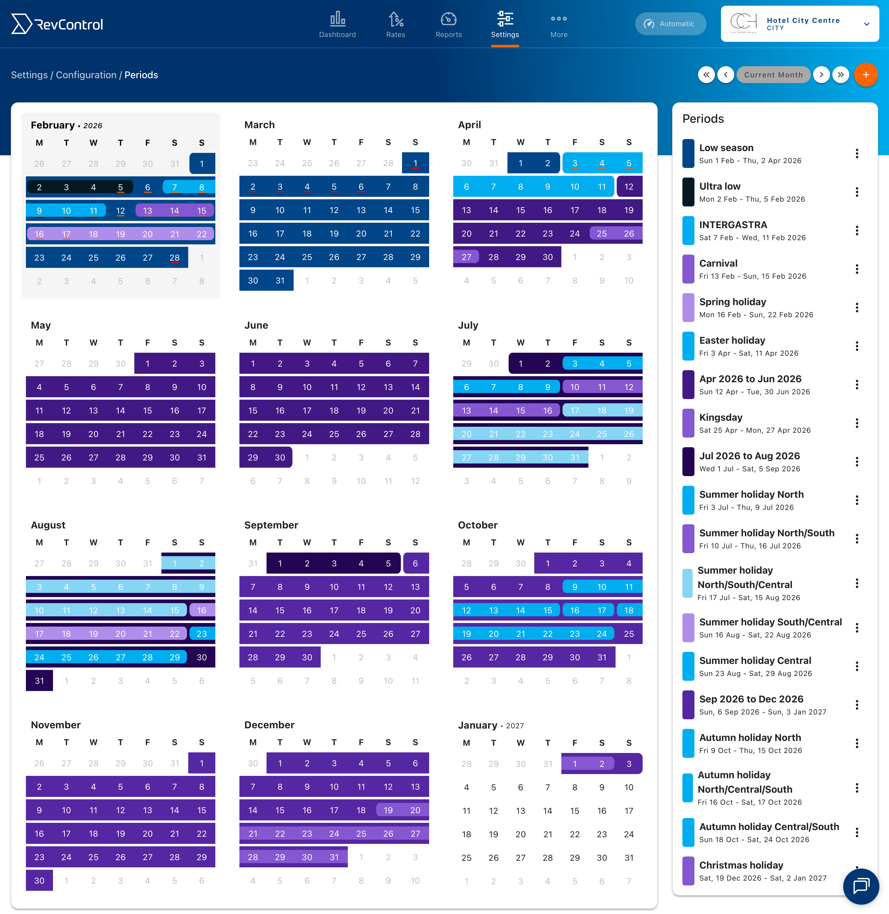 Perioden sind ein zentraler Baustein in RevControl. Sie bestimmen, wann bestimmte Einstellungen gelten, wie zum Beispiel Mindestpreise, Belegungszuschläge oder Höchstpreise.