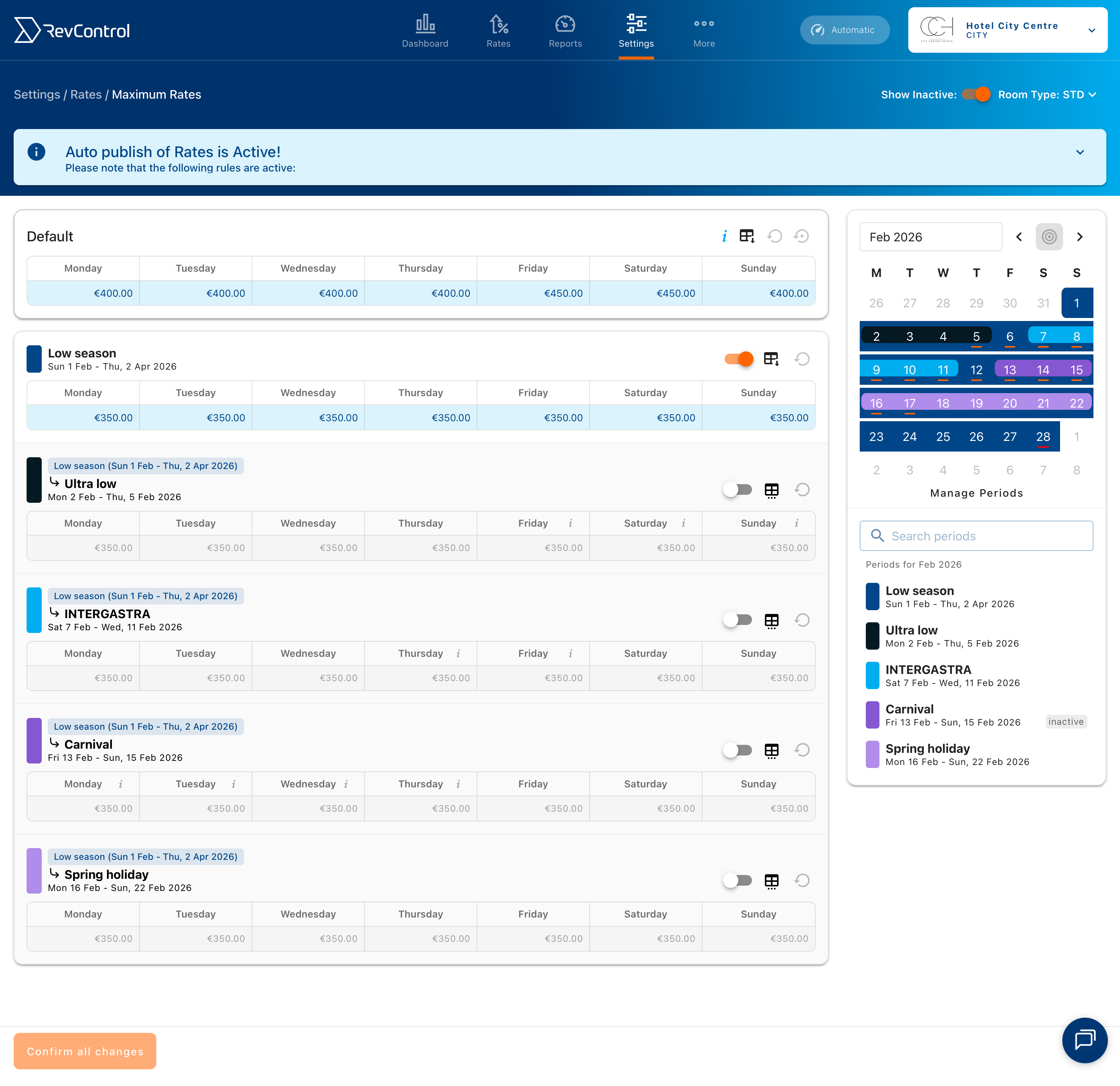 De prijsinstellingen in RevControl bepalen de interne prijsstrategie van je hotel.