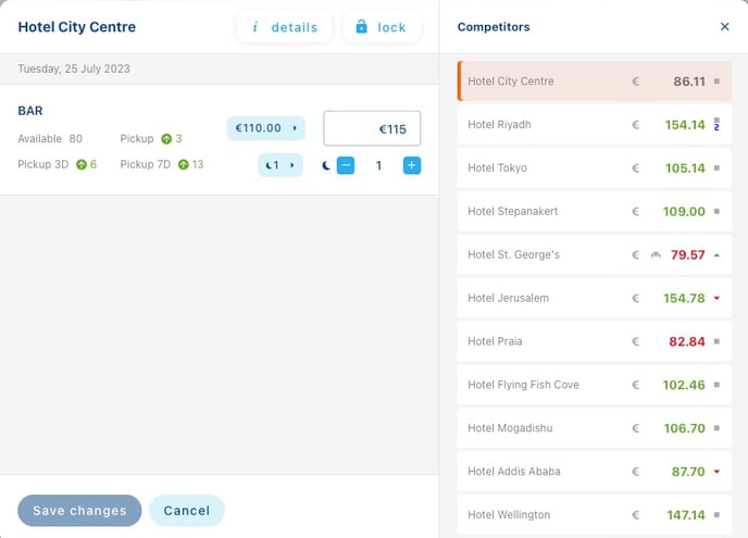 - Groen of rood: Geeft aan of concurrenten duurder of goedkoper zijn dan jouw hotel.